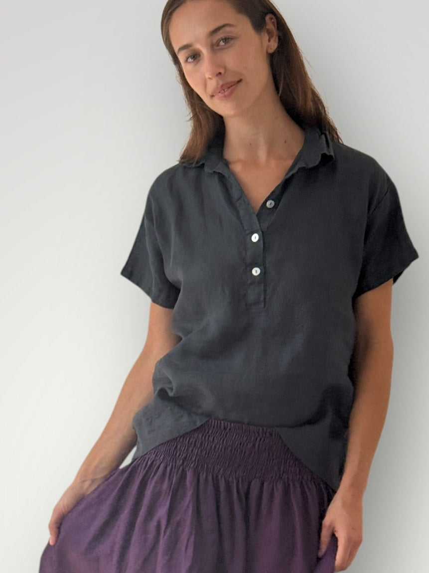 celia top - charcoal linen