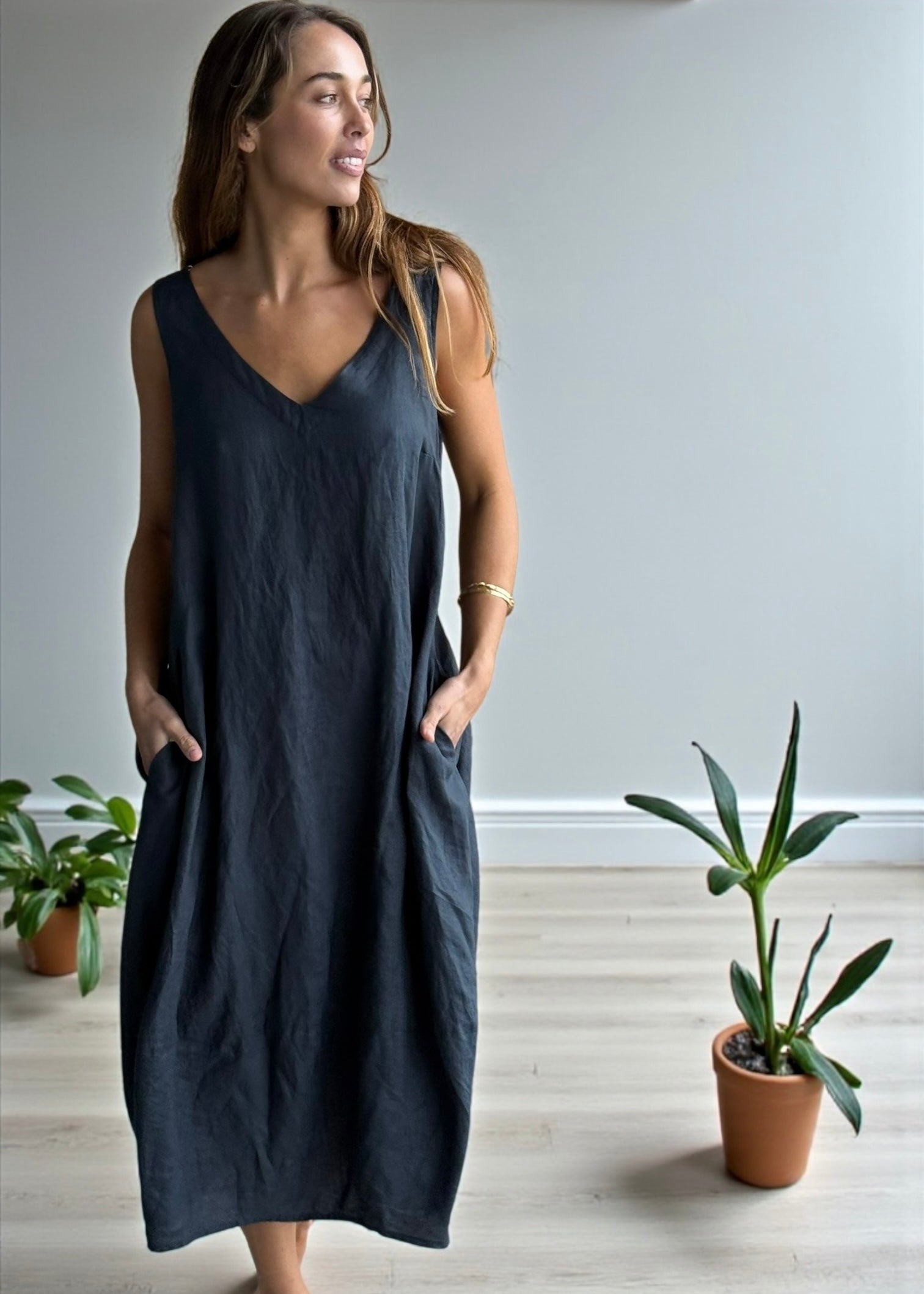 bianca dress -charcoal linen