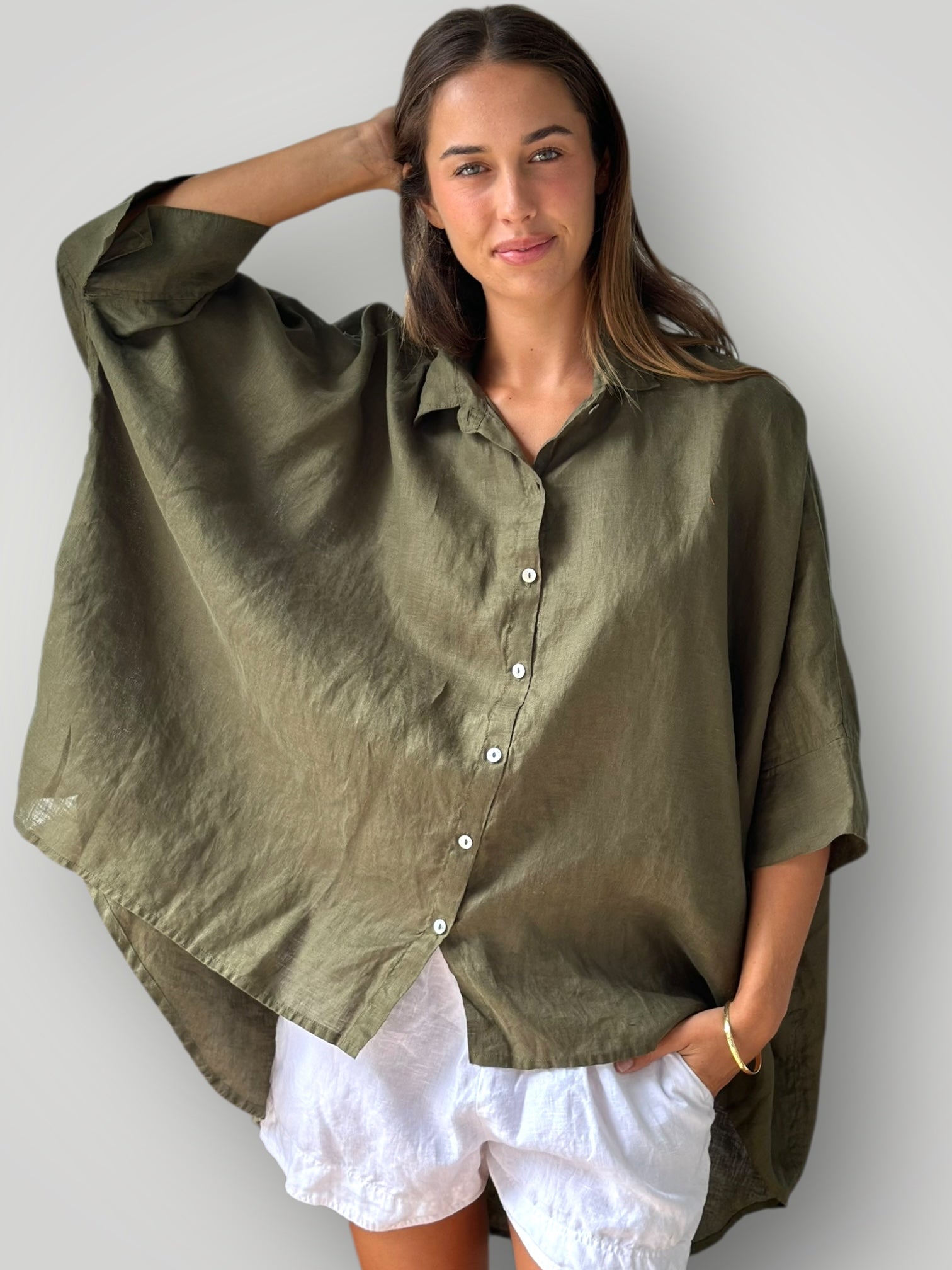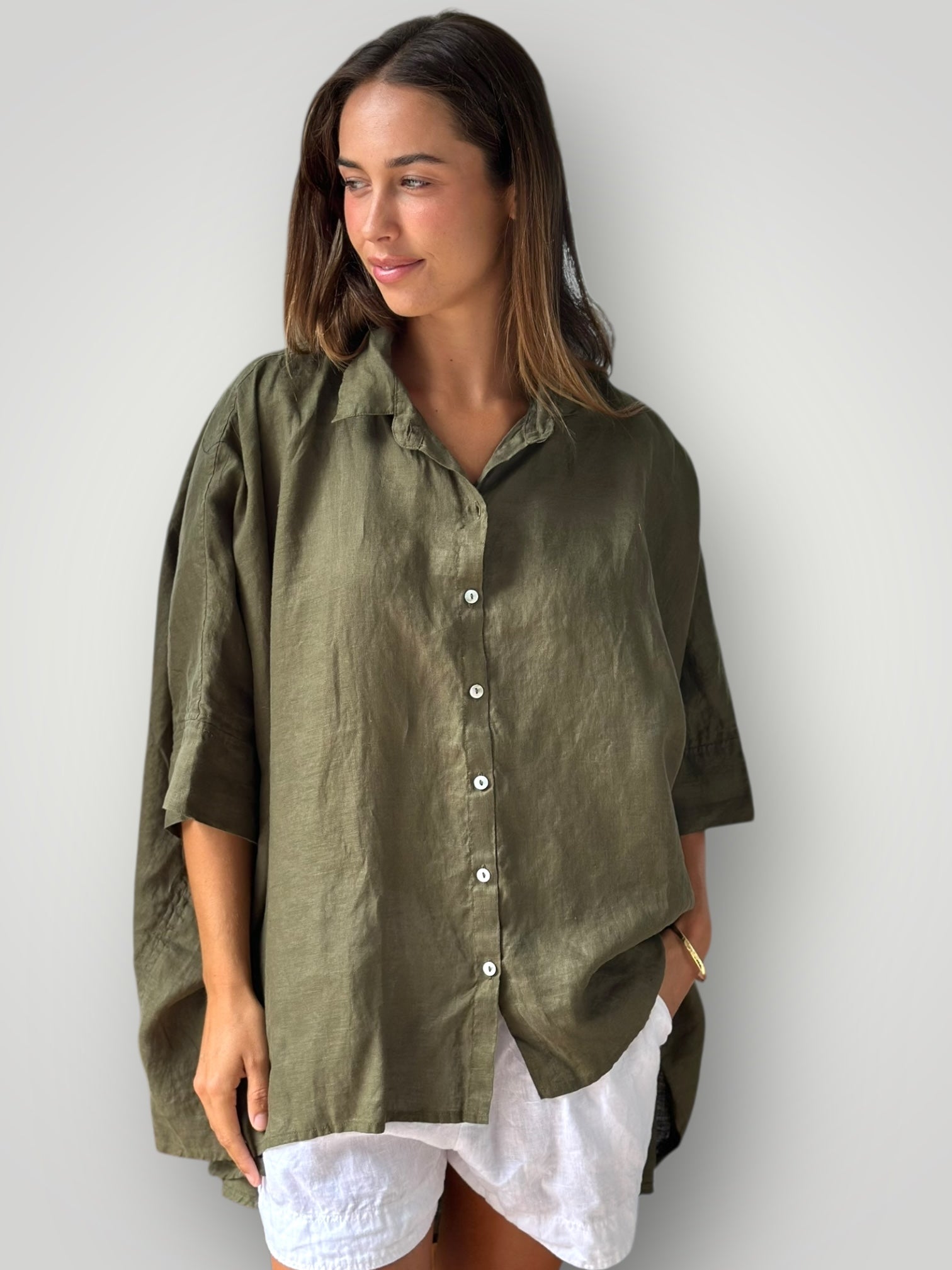 megan shirt - dusty rose linen