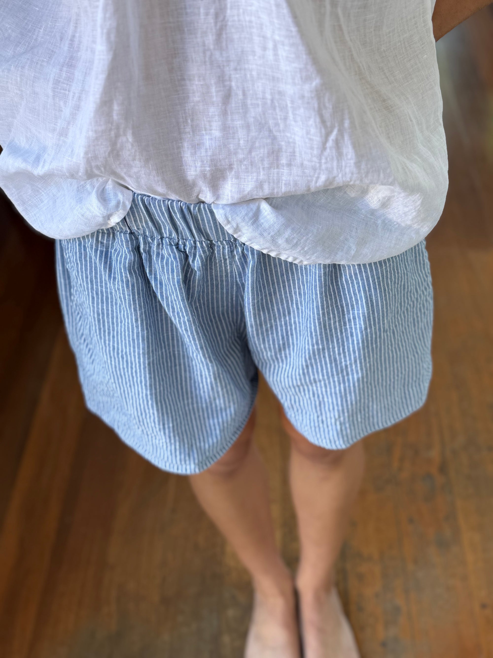 abbey short - denim stripe