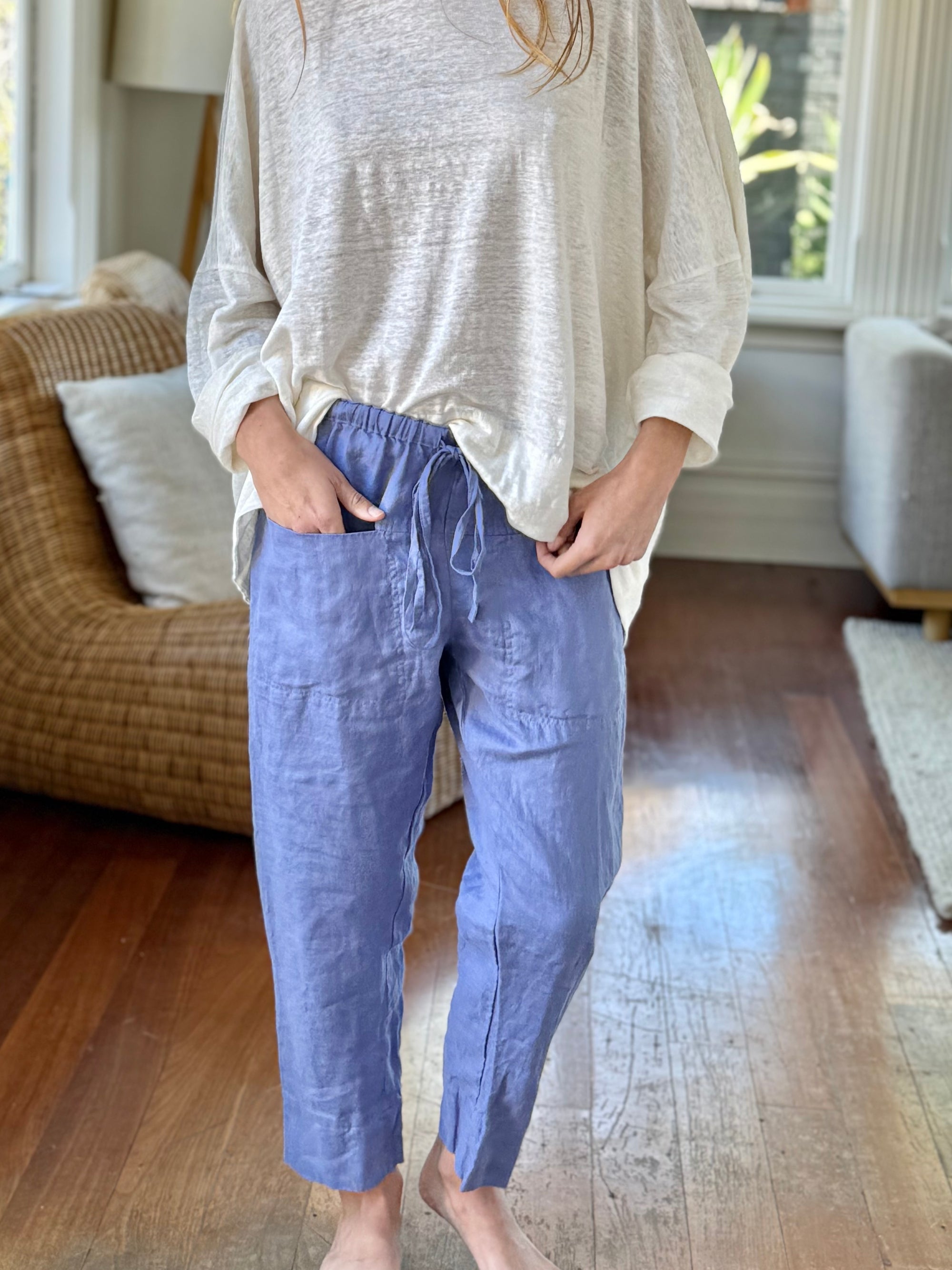 darcy pants - cornflower linen