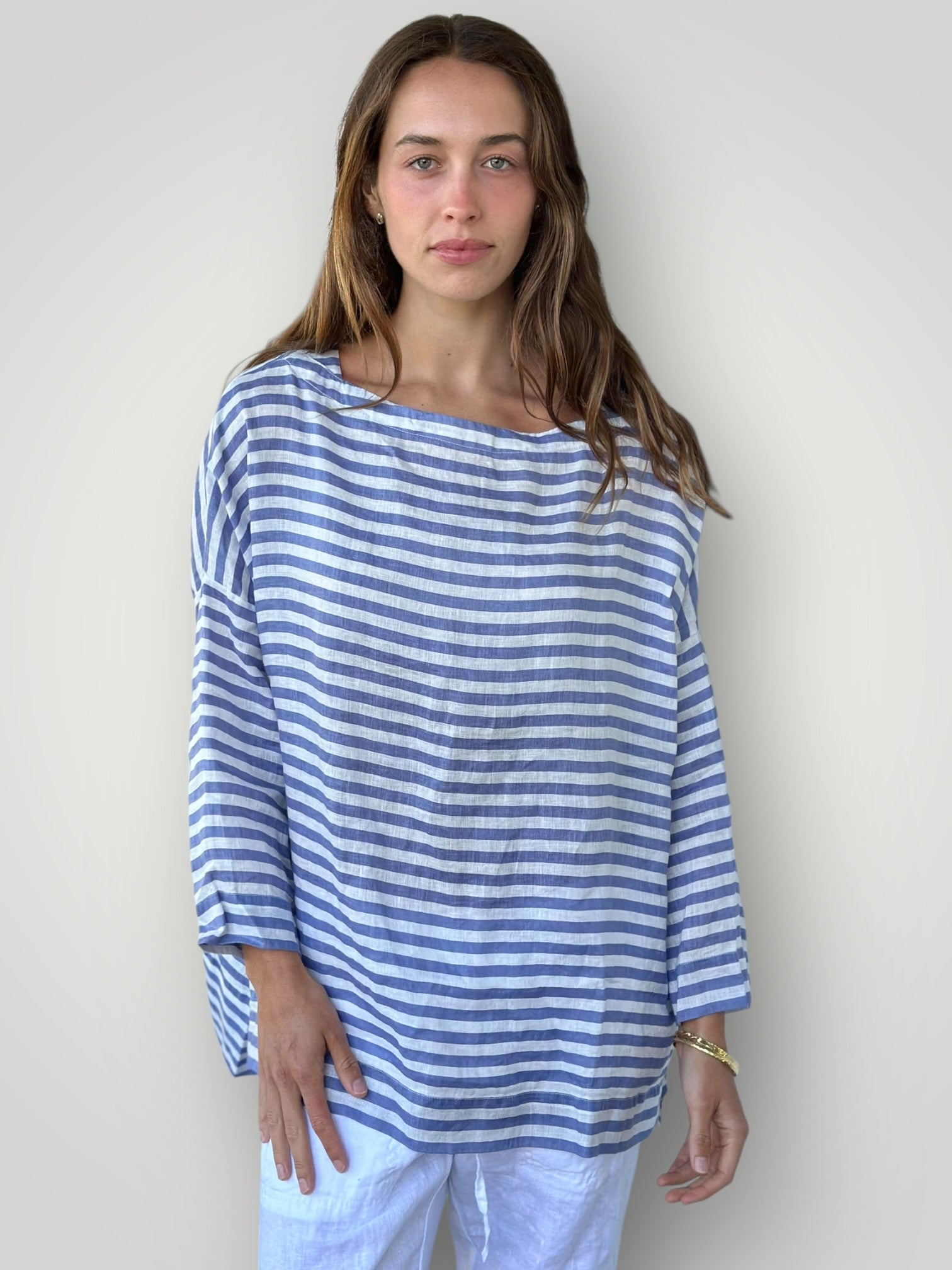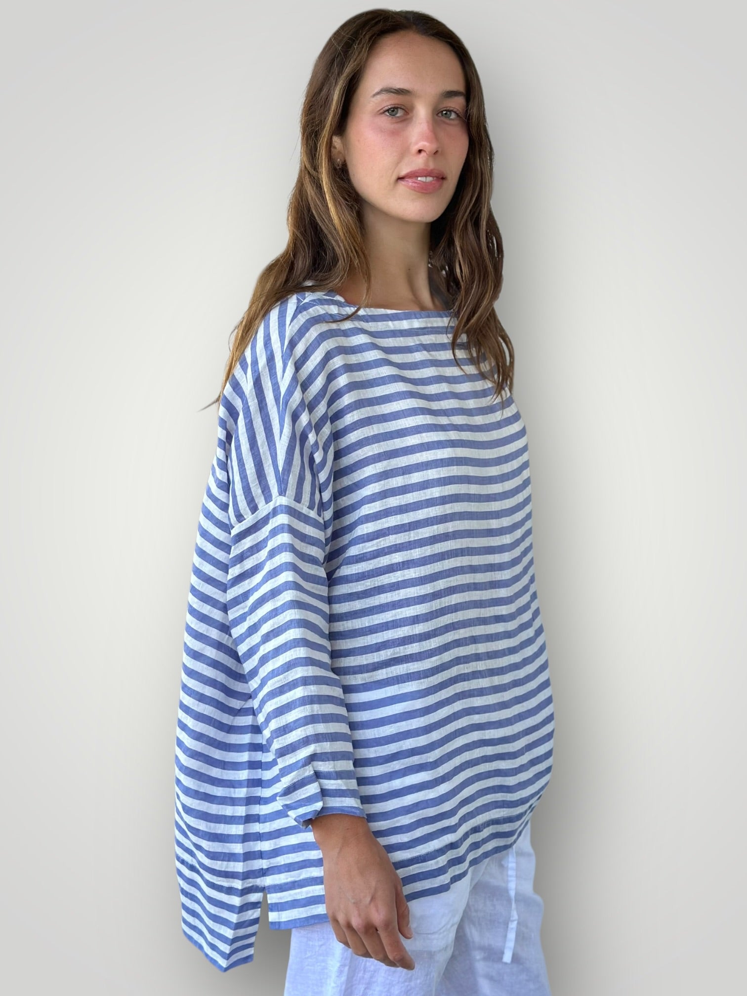 avril top - sky stripe linen
